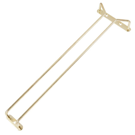 Reduce glass breakage with this polished brass holder for 410mm stemware, perfect for classic and retro-style bars looking for an attractive way to store stemware. Hanging glasses upside down allows for faster drying, clears the counter, and prevents dust from entering the glass. Width between rails: 25mm