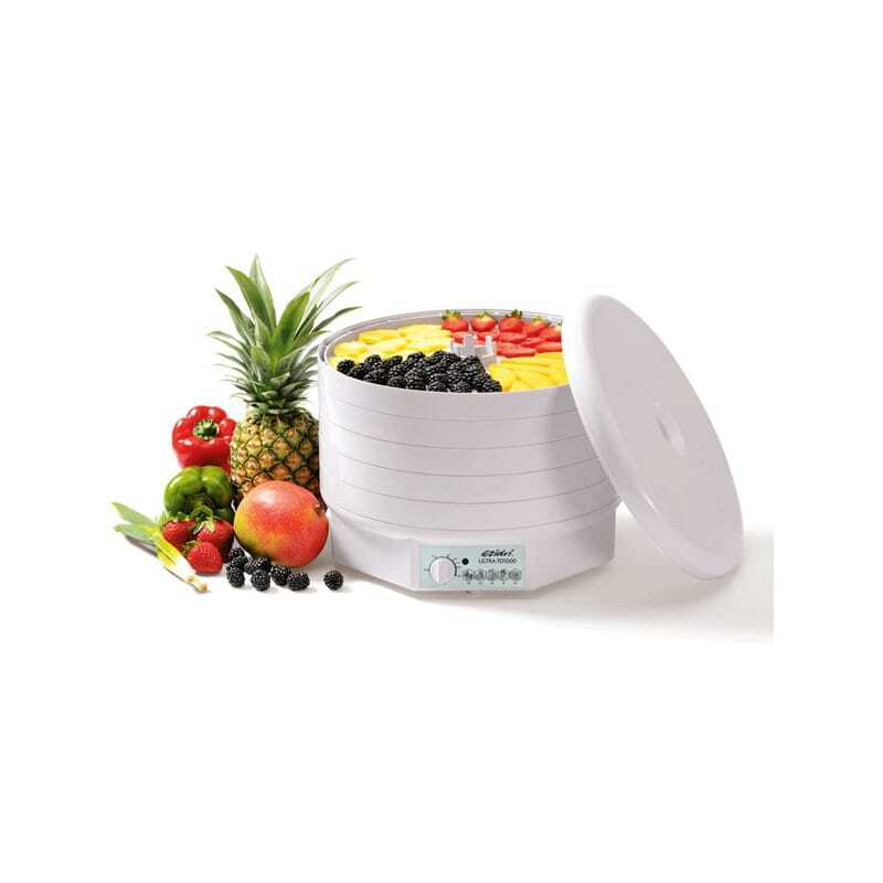 Sa température réglable de 35 °C à 70 °C par étapes de 5 °C. Le ventilateur silencieux fait circuler le courant air à la horizontale, donc plus besoin de tourner les plateaux. Pourvu de 6 plateaux en inox de 327 x 330 mm. Les plateaux sont espacés uniformément et facile à enlever et à nettoyer. Vous pouvez surveiller le séchage grâce à la porte transparente.