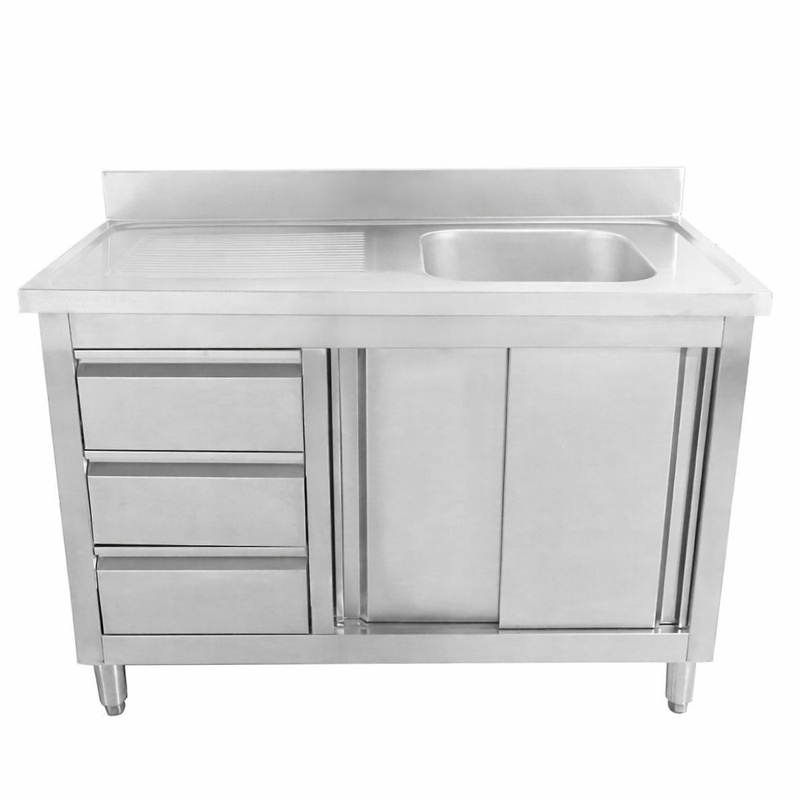 Idéale pour les professionnels de la restauration, cette Plonge à 1 Bac comprend un dosseret et une étagère inférieure. Le dessus est en acier inoxydable 304 avec une épaisseur de 1,2 mm et les pieds sont en acier inoxydable AISI 430. Elle mesure 750 mm de long, 600 mm de profondeur et 900 mm de hauteur. Les dimensions de l'évier sont de 450 mm de longueur, 610 mm de profondeur et 250 mm de hauteur.