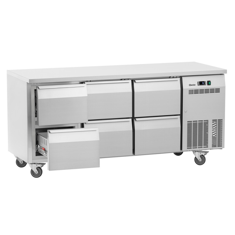 Equipada com um sistema de refrigeração ventilado, esta mesa refrigerada garante uma distribuição homogênea da temperatura entre 0 e 10°C, permitindo conservar seus alimentos em condições ótimas e manter sua frescura por mais tempo. O termostato integrado facilita o controle e o ajuste preciso da temperatura, adaptando assim o aparelho a diversas necessidades de armazenamento.